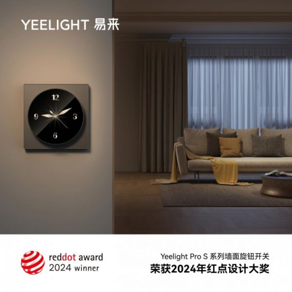 Yeelight Pro S系列墙面旋钮开关是易来在2023年推出的重磅新品,拥有2.1寸圆形超清大屏,甄选奢级材质,有微晶石面板、肤感玻璃面板和金属玻璃面板三种选择,塑造科技与美学的墙面艺术,满足了用户对高端智能家居产品的想象。目前,Yeelight Pro S系列墙面旋钮开关的工业设计和UX两方面获得2024 iF设计奖和2024年红点奖,成为引领行业设计的重磅产品。