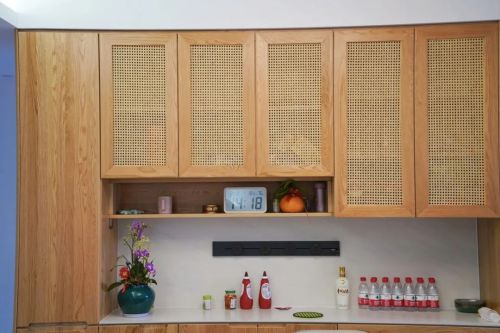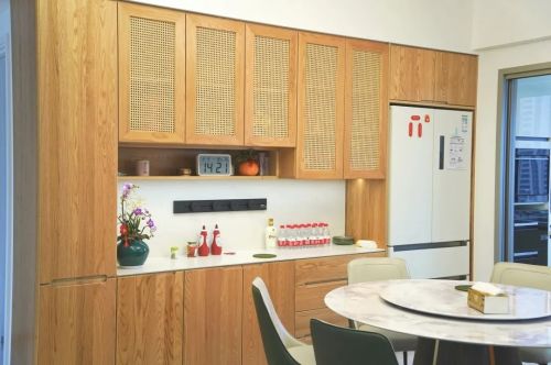 高颜值藤编元素,隔绝灰尘的同时自带朦胧美感,开放格收纳茶包、杯子,等小物件。一目了然很好拿取。回字型柜门精致度拉满,线条感十足,简单大气还不失质感