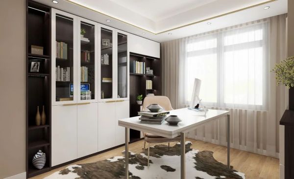 书房中的定制柜体,也是绝对的主角。不同柜体区域,采用不同的设计方式,可收纳、可展示,既养眼、也实用。
