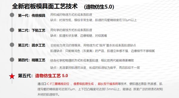 优秀的产品得益于背后源源不断的技术迭代。得益于新明珠岩板全新的工艺技术——造物仿生5.0技术。通过口-C-F三重精准定位、像素级肌理生成、超长型干燥系统等技术,使肌理还原自然质感,肌理沟壑的精细度克达到35μm,上下凹凸幅度可达到1.5mm以上,能够还原更广泛的昂贵石材和木材的肌理细节。