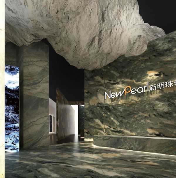 本次新明珠岩板设计打造的主题展厅,源自大自然的整块岩石中,切割出新明珠岩板的造物空间,鬼斧神工,神秘大胆,诉说着天然石材的沧桑和岁月的沉淀,又将现代人们对自然及高品质的生活渴望融入到展厅设计中,还原天然的感动。