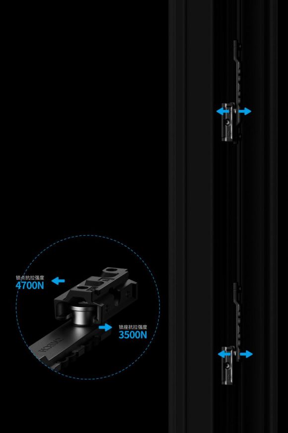 在选购门窗时,一定要看铰链部分的承重力度是否足够,有些高品质的铰链配件不仅结构稳定耐用,还能够为门窗提供足够限制力,部分可抵御8-12级台风,能在强风来临时,给予窗扇支撑力和稳定性。