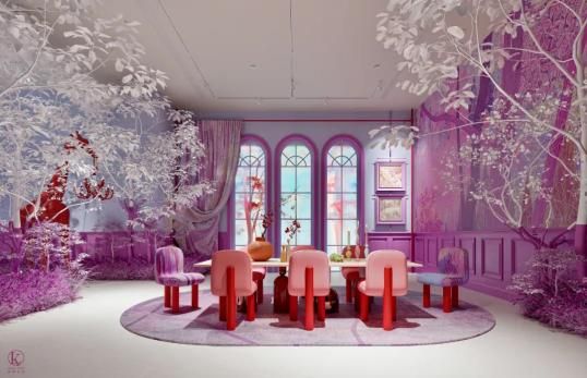 入画“万物成诗”张存玫沉浸艺术展位于上海宝龙艺术馆言午画廊中。展厅现场还设置了自然系全息光影、艺术家高端定制家具等,打造沉浸式观展体验。通过从艺术家张存玫作品中提取色彩元素,将展览现场分成9个区域,用园林修剪后的弃枝打造了100棵树,营造出浪漫的林间氛围。