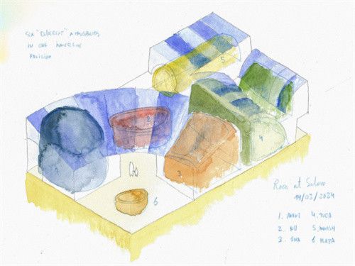 装置中,曲线造型的形状和颜色梯度,象征着陶瓷烧制过程的操作温度,自支撑结构可以在干燥环境中组装,也很容易拆卸,确保了其在未来活动中能够被重复使用。