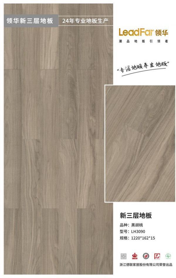为了满足各大消费者的不同需求,领华地板推出了多类别的黑胡桃地板产品,如实木锁扣地热地板系列、实木三层系列、实木多层系列等等。甄选全球珍稀树种,特殊工艺加持,与居家空间有机融合,展现空间的色彩和质感美,构建温馨的家居空间。