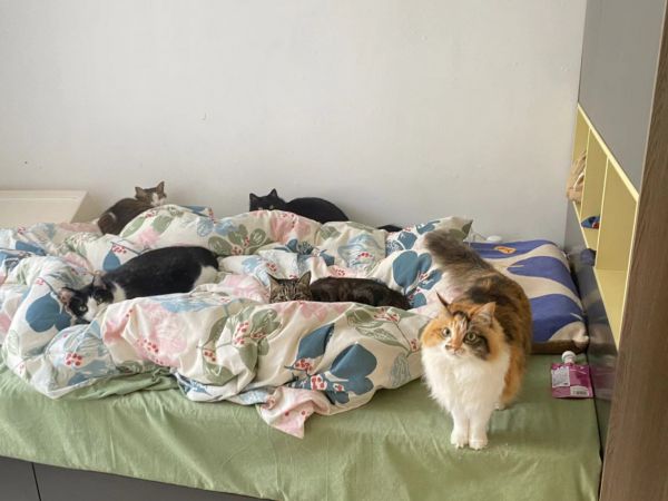 这些毛孩子,是钟惠在过去五年陆续收养的小流浪。让钟惠从怕猫转变成热心救助流浪猫狗,还得从一只小母猫说起。