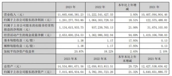 4月11日,索菲亚发布2023年年度报告。报告显示,索菲亚实现营业收入116.66亿元,同比增长3.95%;归母净利润12.61亿元,同比增长18.51%;基本每股收益1.38元/股,同比增长17.95%。