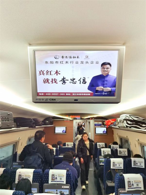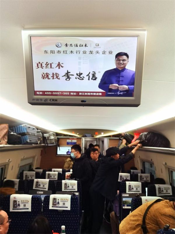 李忠信红木广告在高铁电视上亮相,进一步提升品牌知名度和美誉度
