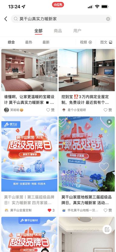 线上互动更精彩,小红书和微博双端话题联动上线,4月15日起,小红书搜索#莫干山真实力暖新家;微博搜索#真实力暖新家,和莫干山家居一起让新家更有温度!