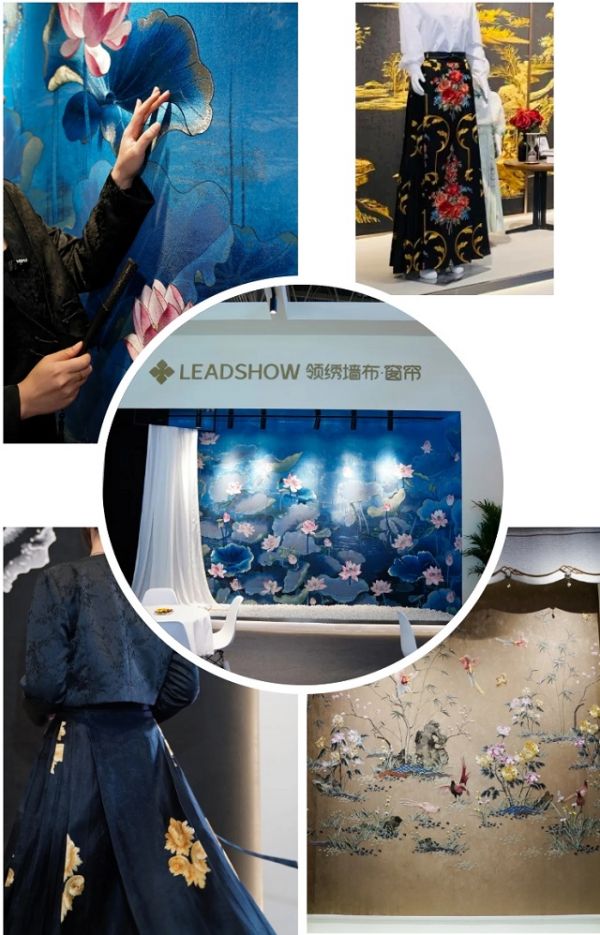 这次的两幅新品重工刺绣墙布让人驻足观赏,部分工作人员身着由刺绣墙布制成的马面裙,创新夺目!我们的刺绣墙布不仅仅是一件产品,更是中国传统文化的一部分。通过领绣的创新融合,将中国的传统美学与现代居家生活完美融合,既弘扬了民族文化,又推动了刺绣艺术的创新与发展。