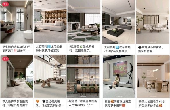 积蓄传播势能,赋品牌新活力。作为具有三十余年底蕴的品牌,QD瓷砖深刻洞察不同渠道消费需求,持续在抖音、小红书、微信视频号等新媒体社交平台全面开花,通过家装案例分享、产品分享等多样化形式,种草年轻用户,完成品牌与消费者的高效对话,打开流量入口,打造立体式的品牌新媒体营销矩阵。