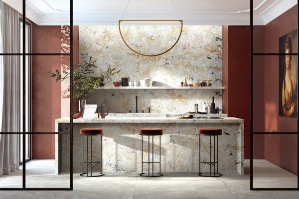 瑰玉采用第三代皮纹技术,色、纹、肌、光、触的韵律节奏,展现自然审美的松弛感,在室内装饰应用效果明显,现已成为室内台面的热门产品,适用于装饰墙面、台面、洗手台等场域,广受市场欢迎。