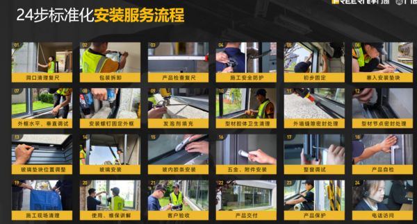 飞宇门窗联合门窗专业安装品牌——门窗帮,着力打造24步标准化安装服务流程,实现交付标准领先,保障客户门窗安全落地。