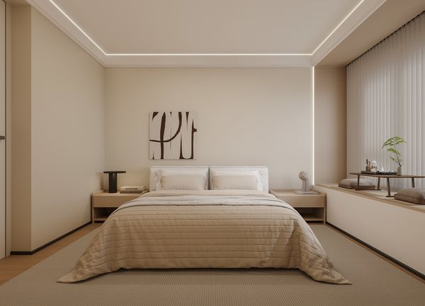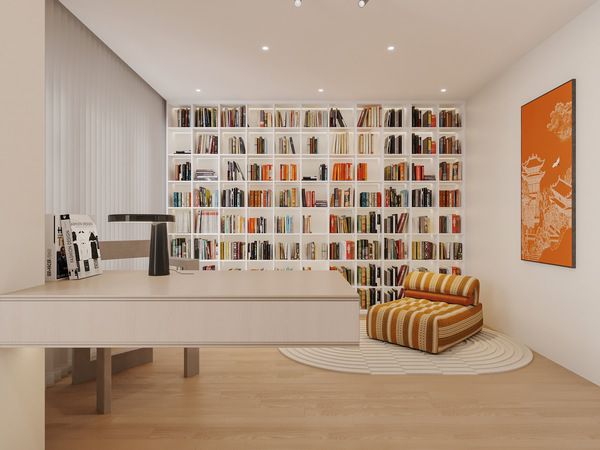 设计思路:把其中一个卧室与客厅空间互通成为书房,作为开放式的书房与客厅,有充足的空间去构建母子关系以及家庭氛围。120㎡的房子却蕴藏了不亚于别墅的设备条件,开放式的餐厨空间蕴藏着家庭的所有欢乐以及对生活的仪式感。
