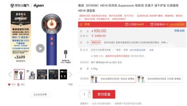 闪电新品戴森HD16智能吹风机同步首发 京东销量位居全网首位