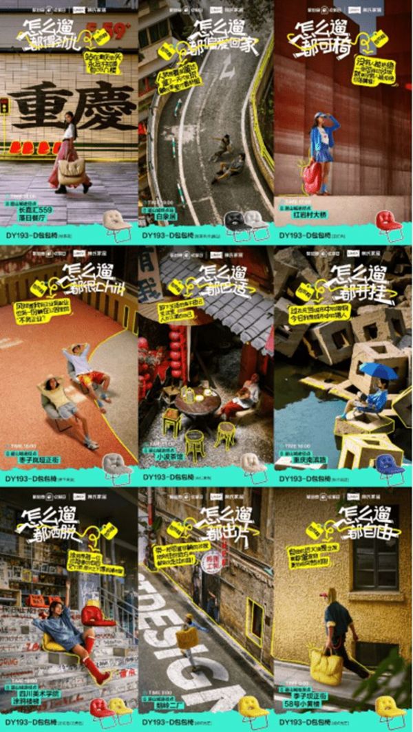 主线二:延续城市营销思路,将“包包椅”与重庆生活场景融合,打造“包包椅带你游重庆”事件。