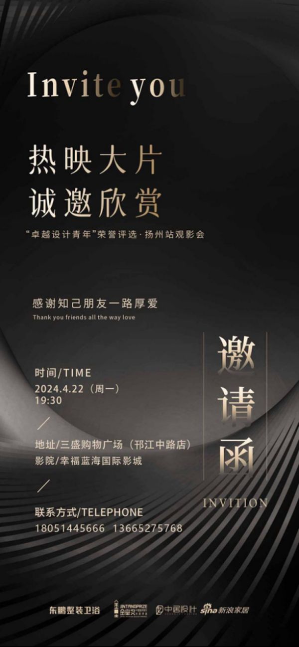 青年设计师一直是设计产业的中坚力量和未来,也是赋能家居家装行业的先锋模范。为持续推动中国设计产业良性发展,发挥金堂奖设计师服务价值,助力青年设计师成长,中居设计、新浪家居、金堂奖联合东鹏整装卫浴,共同推出“2024卓越设计青年”荣誉评选活动。荣誉评选首站将于2024年4月22日落地江苏扬州,届时还同时举办扬州设计青年高端观影会。