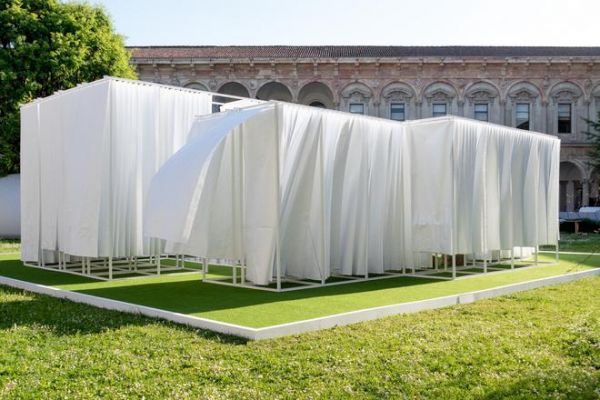 “爿园”是东方美学的一抹隐喻,整件艺术作品以杜邦™Tyvek®构建,以大面积的白色赋予装置明确的体量,与周围历史建筑形成“轻盈与厚重”的对比。画卷般悬挂起的纸张将装置的时空体切割,人以变化的速度体验观察空间的间隙,光、风和温度的细微变化被身体感知,也被纸张的形态所捕捉。感官的综合使艺术装置化身东方的园林,一个微缩的宇宙,在米兰留下一场短暂的、诗意的,可回忆的东方梦境。