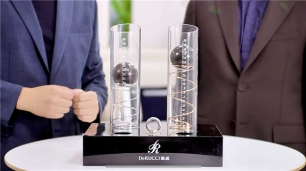 在现场的物理测试中,张朝阳通过两个同质量小铁球弹压测试,展示了德国AGRO原矿石弹簧和普通弹簧的区别。在小铁球的压力下,可以明显看到德国AGRO原矿石弹簧支撑力更强,震荡和晃动的频率也比普通弹簧低。“这款弹簧弹性系数和阻尼系数更大,因此震荡幅度和频率更小,柔韧度、支撑性、稳定性也更强。”张朝阳用物理概念解释道。