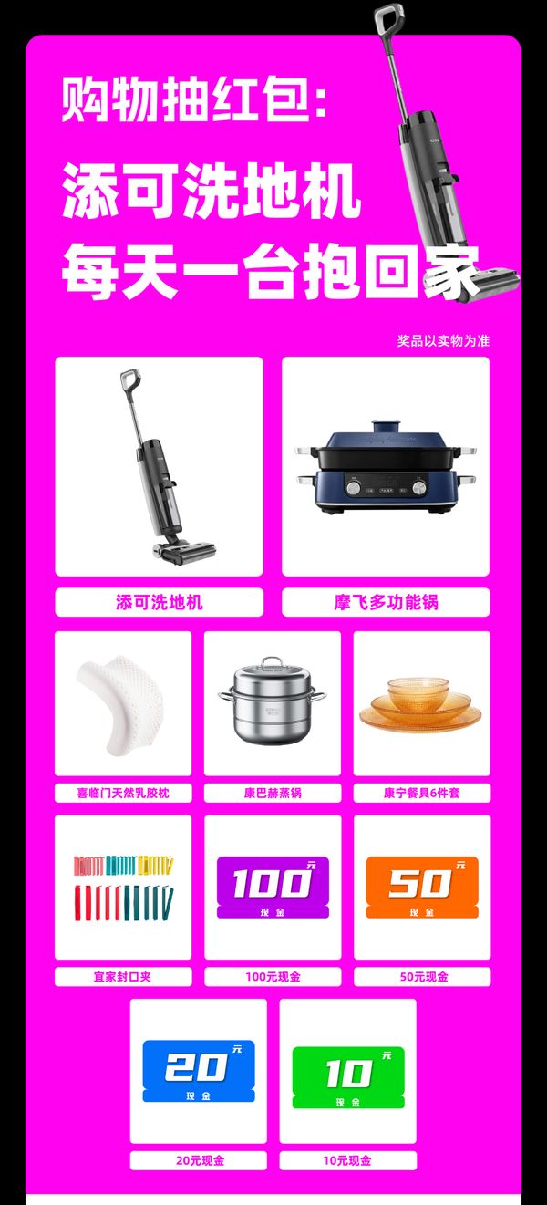 05、「购物抽红包」添可洗地机每天一台抱回家