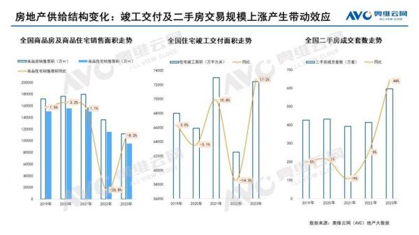 首先是房地产层面,2023年新房交易降幅趋缓,全国住宅竣工交付面积增长向好,二手房市场交易规模大幅提升,带动二手房市场占比走高。奥维云网(AVC)地产大数据显示,2023年二手房交易占市场整体的37%,同比增长44%。二手房交易规模上涨将带动下游消费,从需求角度,将对智能门锁行业产生一定的正向拉动。