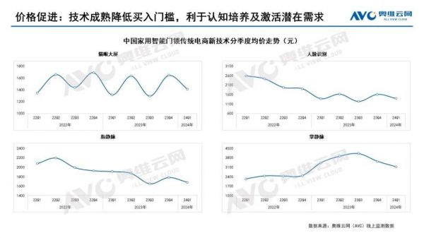 在中国家用智能门锁行业中,合理的价格定位是吸引消费者、扩大市场份额的关键之一。奥维云网(AVC)线上监测数据显示,2024年一季度,中国家用智能门锁行业线上整体市场(专业电商+平台电商+内容电商,下同)均价为992元,进入千元以下,同比增长2.0%,增长的关键原因在于内容电商的结构优化。