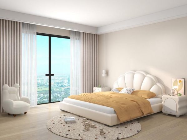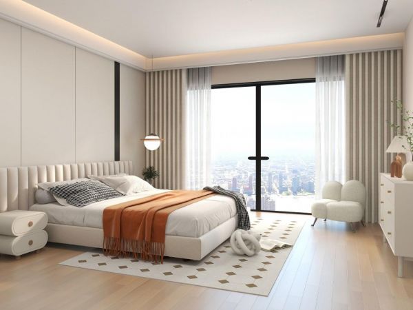 奶油色窗帘能够创造出柔和的空间氛围,搭配同色系墙布等软装饰品,可以带来放松和舒适的愉悦享受,特别适用于卧室、书房等私人空间。