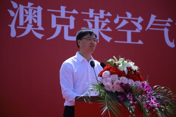 在盛大的奠基仪式上,澳克莱环境科技股份有限公司董事长朱超峰先生发表了热情洋溢的致辞。他向莅临现场的各位嘉宾表示了热烈的欢迎,并对长期以来关心和支持澳克莱空气能发展的领导、合作伙伴表达了深深的感激之情!他表示:澳克莱空气能热泵智能制造工厂建设项目是澳克莱战略布局的重要一环,项目建成将进一步提升公司研发和生产能力,为公司持续发展提供强大引擎。