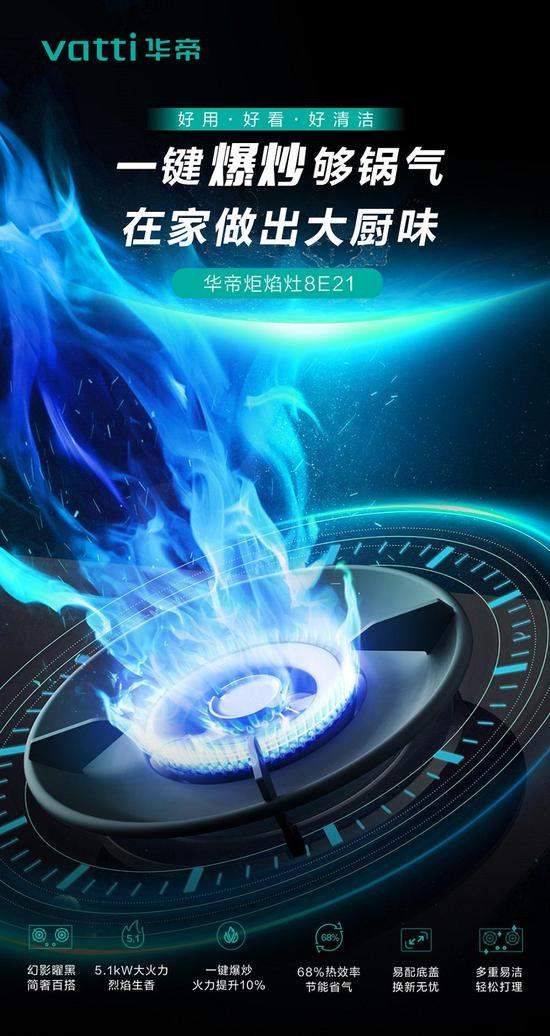 另外,华帝炬焰灶拥有一键爆炒功能,不仅火力猛加热快,在家也能做出大厨味,同时还特别好清洁,油污一抹即净。华帝打造的净洁套餐产品,回归消费者真实需求,不断为用户创造新一代理想厨房。