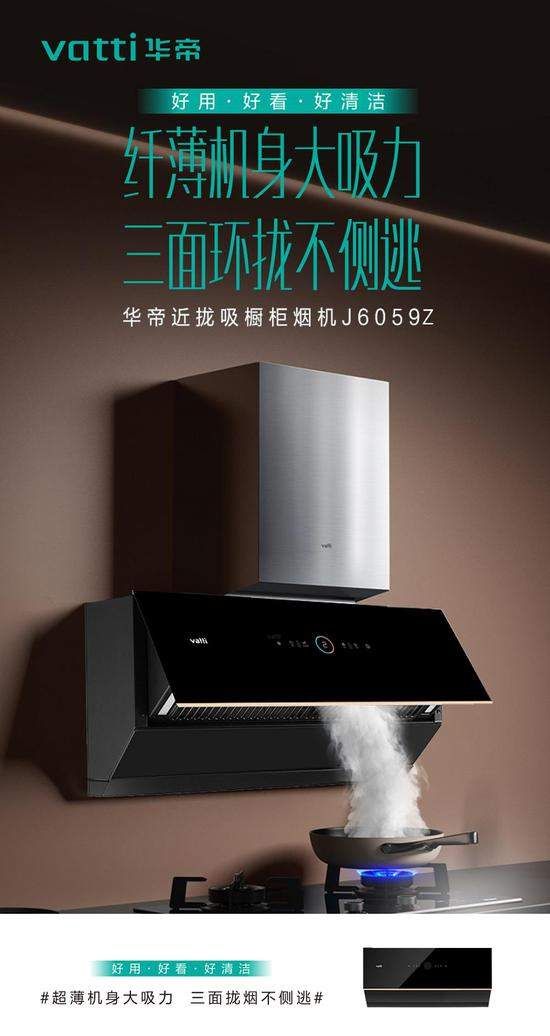 华帝#致净新生活 厨房焕新季#活动精心推出近拢吸橱柜烟机,该产品拥有超薄机身大吸力,外观时尚大气,三面环拢捕烟封锁烟区不越界,配合飓风闪吸快速吸烟,让用户彻底告别厨房烟熏火燎;再搭配智能操控,轻轻一挥智吸油烟,时尚又方便;值得一提的是,该机还拥有自动清洗技术,深度洗净内腔油污,同时油网表面采用新一代纳米涂层技术,油污可以轻松擦除,时刻保持厨房洁净。
