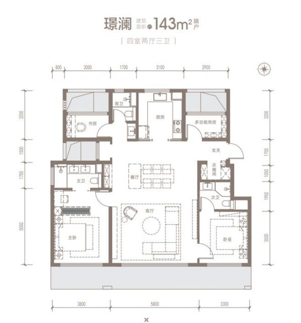保利在顺义的另一新盘项目保利颐璟和煦上周取得了预售证,我把预售证的信息挨个统计了一遍,拿证房源一共13栋住宅楼户型面积在81-171平米,主力户型面积段在140-150平米左右,整体的基础得房率在84.69-86.65%之间,这种得房率是真的很牛X,因为这还没有算上前后的黑科技,我随便给你们挑张户型图看看以143平米的端户为例。