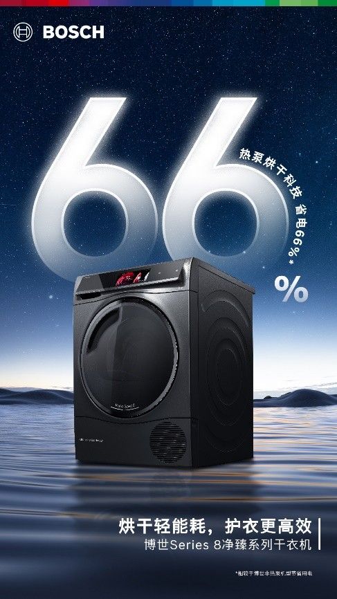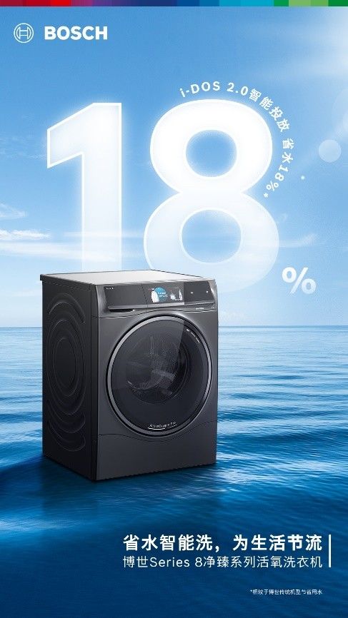 博世家电不仅将可持续消费理念贯彻于产品研发的每个环节,更考量到消费者生活的点点滴滴:譬如,针对消费者日常家居除菌清洁的需求,博世家电提供了高效洁净之余更节省水电的家电解决方案。以居家洗护必备的洗、干衣机为例,博世Series 8净臻系列活氧洗衣机搭载博世i-DOS 2.0智能投放科技,能够精准计算洗衣液用量以减少漂洗耗水,荡涤衣物脏污,祛除化学残留,在省心净衣的同时有效节省水资源,相较于传统机型每次洗涤可节省水18%1;博世Series 8净臻系列干衣机则配备热泵烘干技术,可循环利用空气热能烘干衣物,相较于市面上传统空气冷凝式干衣机,平均每一个烘干周期(满载)能够省电66%2,极大降低能耗,实现更高效节能的干衣。