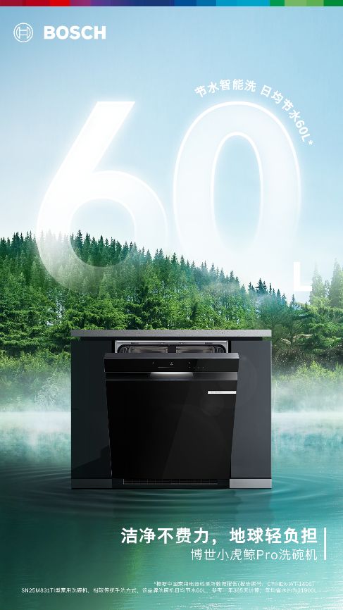 此外,针对家庭日常碗碟清洗难题,博世家电以智能科技焕新绿色进阶净洗体验。博世小虎鲸Pro洗碗机搭载智感油污探测器,可通过判断餐具脏污程度精准匹配适宜洗涤时间——轻污选择快速节能冲洗,重油则采取高压循环冲洗,有效提高水利用率。测试表明,洗涤同等数量餐具时,传统手洗方式耗水约70L,而使用博世小虎鲸Pro洗碗机只需约9.7L,每天平均节水可达60L,用水量仅占手洗方式的1/83,有效节约水资源,在洁净餐具的同时告别多余浪费。