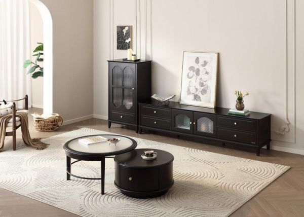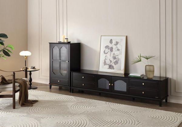 电视柜组合搭配半高柜,不仅能轻松解决收纳难题,高低错落的设计,更让客厅层次分明,彰显出复古韵味与极简主义的融合之美。