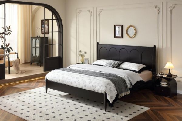 通体黑橡色,自带年代感滤镜,拿捏复古腔调,质感十足;床头造型流畅简练,搭配复古圆拱门元素和圆润罗马柱侧柱,更显精致优雅;50mm超薄轻巧床屏设计,减少占地面积,留出更多活动空间;高密加强排骨架,34根多层实木板搭配68个强力卡扣,结构稳固,分散受力,静享香甜美梦。