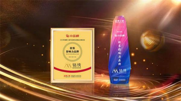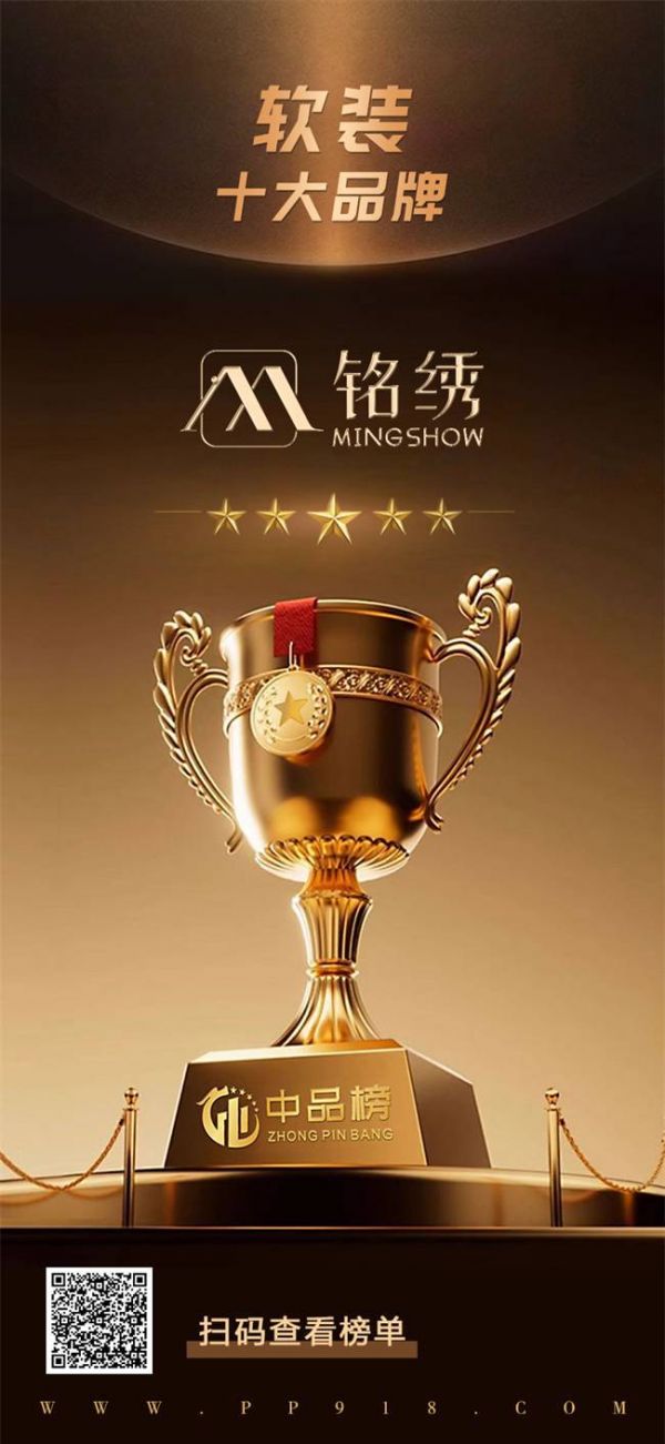 经过激烈地角逐和严格地评审,铭绣墙布凭借着优雅精致的高质量产品、先进的生产技术以及超强的影响力,受到了众多消费者的青睐,不负众望获得“2024中品榜软装十大品牌”的荣誉称号。