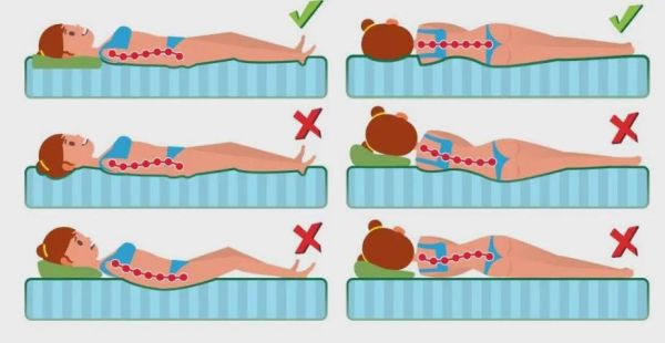 床垫过于柔软,平躺时就会导致床面凹陷,不能为腰部提供适当的支撑;床垫过于坚硬,又会过度支撑起肩部和髋部,同样不利于释放腰椎压力。