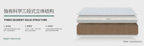 大自然针对亚洲人身体特点研究出健康睡眠床垫的科学结构:三段式立体结构,更加符合中国人的脊椎生长和体型,适用不同年龄,身高,体重,体型和睡姿的人群,专业护理脊椎、腰椎和颈椎!