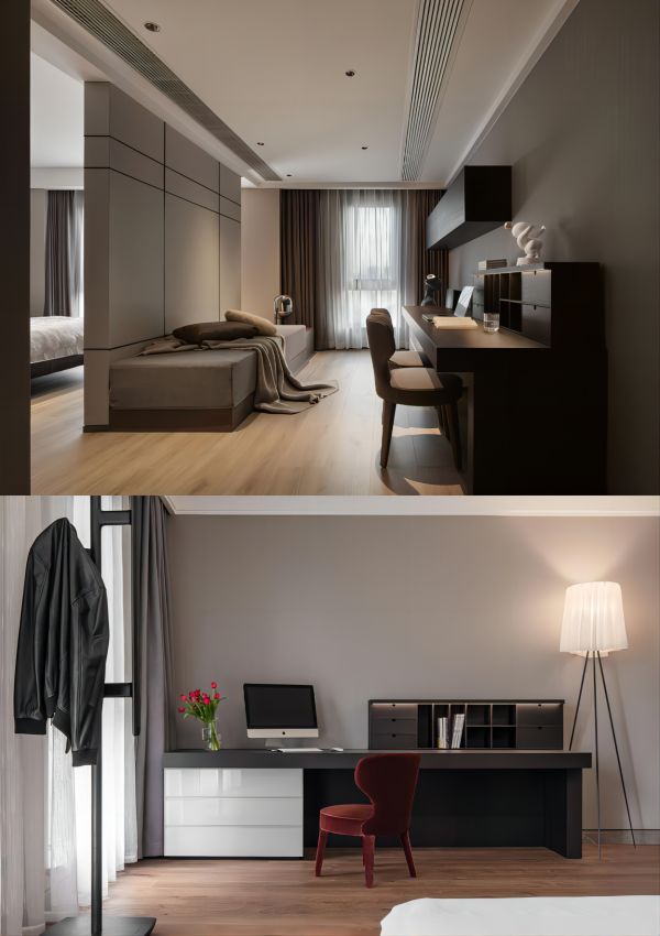 大雅书桌,是一套融汇书桌、书架、储藏的多功能产品,它在不同空间能发挥多样功能:在书房中,它是全能助手,提供舒适的办公、学习环境;在卧室里,它可充当电视柜、梳妆台;在客厅中,它能打造别致的阅读式会客厅,增添一份雅致。它的多功能性使其成为节省空间的绝佳选择——只需一面2.72米长度的墙,便可满足多种功能需求。