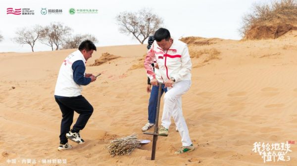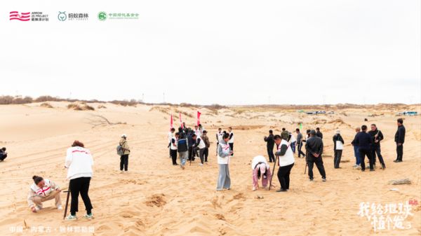 活动当天,「箭牌泽计划」公益合伙人志愿者还在包海林老师及众多林业专家的指导下,同与会领导和嘉宾一齐前往指定区域穿戴专业设备,搬运树苗并填土、浇水,在种植区完成了栽种计划,成功点亮认真种树的公益信号。相信在未来,这片沙漠将会成为一道亮丽的风景线和沙漠中的绿色屏障,推动地球环境绿色发展。