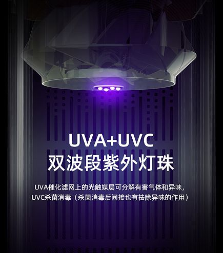 为了确保灭菌过程的安全性,诺比克KJ360宠物空气净化器采用UVA+UVC双波段紫外灯珠。紫外灯激发机器滤网上的光触媒,光触媒释放到空气中,快速分解空气中的甲醛,持续净化建材家具释放的多种气态污染源,避免二次污染。同时UVA催化滤网上的光触媒层可分解有害气体和异味,UVC则起到杀菌消毒的作用。