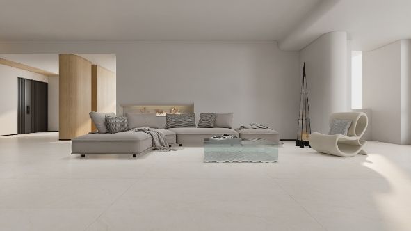 粤强新品23°原石的最大特点是其惊人的高端岩板超白坯工艺打造的纯白底坯,这种纯净美白而纯粹,自然大方,保证观看美感的同时不刺激眼睛,也保证了瓷砖表面的白度和光泽度,如同冰川中最纯净的积雪,给人以清新脱俗的感觉。