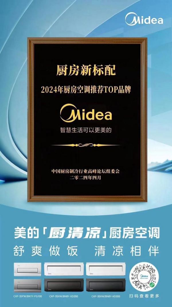美的「厨清凉」厨房空调荣膺2024年度厨房空调推荐TOP品牌,推动引领厨房新标配进程
