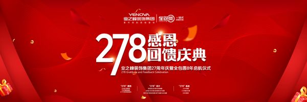 “278”回馈庆典的含义不仅代表着业之峰27年和全包圆第8年启航的辉煌历史,更象征着此次活动全包圆推出的一系列278保障,即278设计、278服务、278售后。