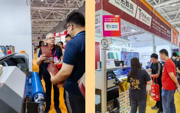 泰拓数码展位现场,每一位工作人员都是以最饱满的状态迎接来自全国各地的客商。本次参展,集合了泰拓数码水晶标打印机明星阵容:A2水晶标打印覆膜一体机、60水晶标打印覆膜一体机以及泰拓数码自主研发WIFI传输切割机,满足客户多元化定制需求,开启新一轮的创富窗口。