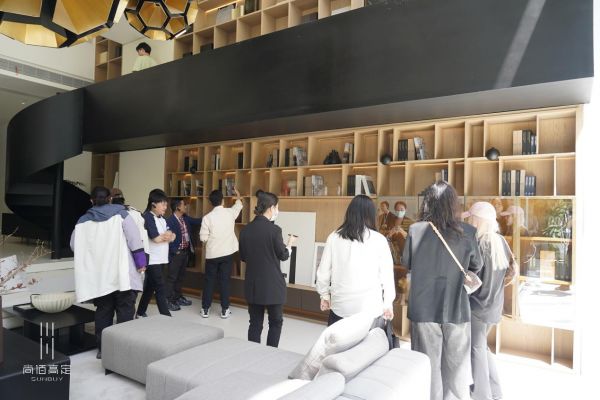 On the morning of April 24th, designers from Hangzhou boarded the train to Hefei. Upon arrival, the first stop of their study tour was to visit the SUNBUY 3000 square meter Hefei flagship store. Led by a guide, the designers entered the showroom, where they observed the extensive use of architectural techniques in the space, such as the sunken courtyard at the entrance and the Scarpa-style stepped design on the first floor. The meticulous design efforts were evident, not only in the spatial creation but also in the product implementation, showcasing the high restorative capability of Shangbai products. The presence of an 8-meter-tall bookcase wall and extra-high wall panels in the flagship store allowed designers to boldly incorporate these elements into their designs. After visiting the flagship store, the designers spoke highly of Shangbai's products and felt more confident in their choice of brand.
