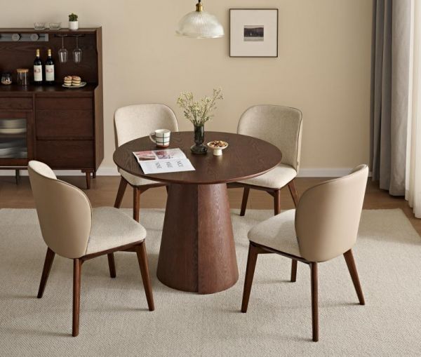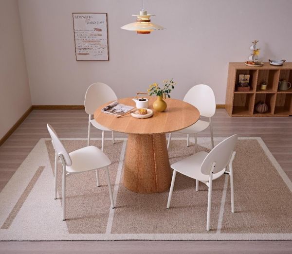1m小巧圆桌,简约正圆造型,中小户型更适配。双色木纹随心挑选,浅色红橡木纹,自然柔和,烘托温馨氛围;莫里斯胡桃木色,优雅内敛,诠释复古美学。落地式圆锥底脚,上窄下宽,轮廓圆润,错层设计更显立体美感,底部加大触底面积,稳固支撑,安享用餐时光。
