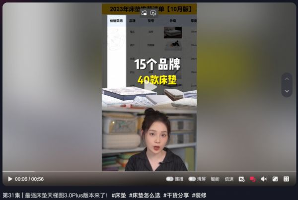 谈起这个策划过程,杜王宸津津乐道,当时买了市面上几十种不同价位的床垫,账号主理人亲自拍摄拆卸过程,对比其中的材料,做真实的内容评测。这样的做法,既让人耳目一新,又让人信服内容。仅仅一年时间‘小徐很抠’粉丝就达到75万,并推动该账号床垫年销售达2000余万元。
