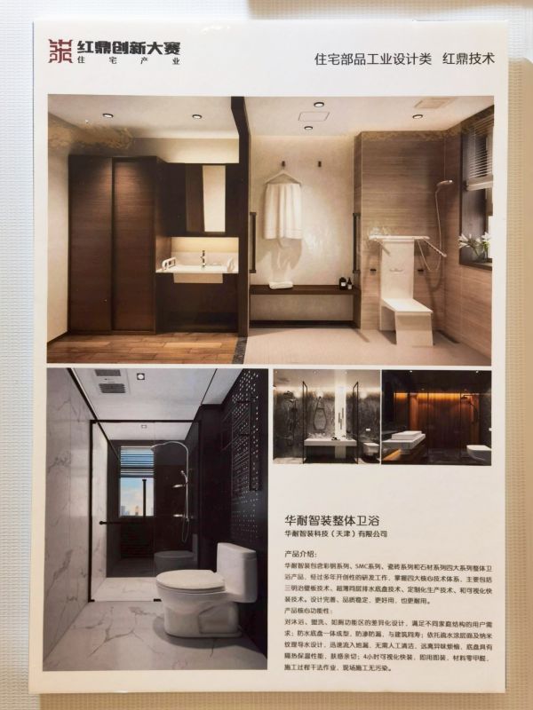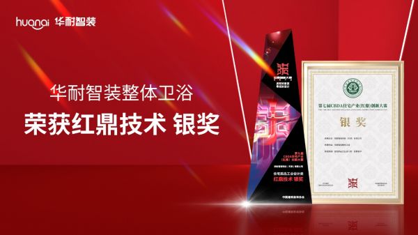 第七届CBDA住宅产业(红鼎)创新大赛华耐智装整体卫浴产品以其绿色环保、施工高效、防霉抑菌等优势荣获“红鼎”技术银奖。
