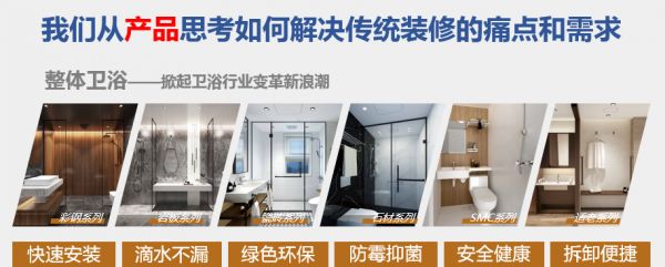 华耐智装整体卫浴采用新型高科技材料,防水底盘、壁板、顶板通过工厂标准化生产,现场装配化安装,配套各种功能洁具形成独立的卫生单元,在有限空间内实现盥洗、如厕、沐浴、收纳等多种功能。产品统筹防水、给水、排水、强弱电、光环境、新风、安全、收纳以及热工环境等方面,具有快速安装、滴水不漏、防霉抑菌、安全健康、绿色环保等特点。